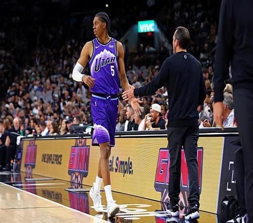本场比赛中,之前整体表现非常一般的爵士锋线新星科迪-威廉姆斯(Cody Williams)难得打出了一场攻守兼备的全能型表现。威廉姆斯全场出场22分16秒,投篮5中4,三分线外1中0,得到了8分3篮板4助攻2抢断的数据,还有1次犯规,正负值为+2。威廉姆斯在进攻端难得保持了稳定的进攻效率,在对手内线也算是制造了一定的威胁,而且还展现出了一定的传球能力和策应能力。不仅如此,威廉姆斯在防守端也算是撑住了局面,也算是能够起到一定的作用的。威廉姆斯在本场比赛中算是打出了一场攻守兼备的全能型表现,发挥出了自己的特点,他也算是为球队的这场胜利做出了自己的贡献。
