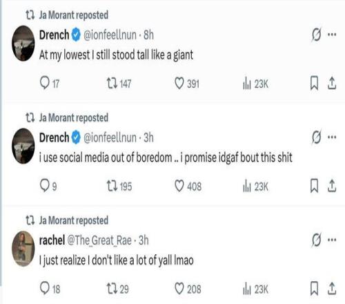 被曝出遭灰熊交易兜售后,莫兰特更是一口气在社媒转发数条消息强硬回击。