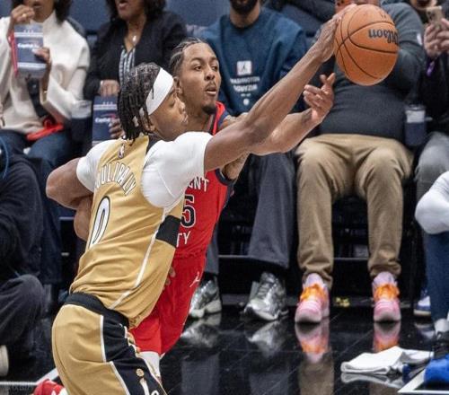 鹈鹕轻取奇才,13号新秀奎因又是超强一战,全场比赛,他出战35分钟,投篮13中7,三分2中0砍下14分16篮板12助攻。