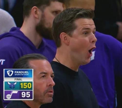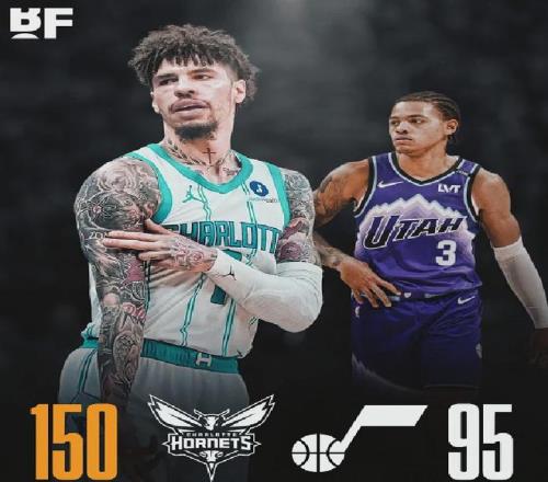 黄蜂在客场150-95锤爆爵士,狂胜55分之多,乃队史最大赢球分差,同时创造NBA史上客场第三大分差,前二是57分和56分(3次)。