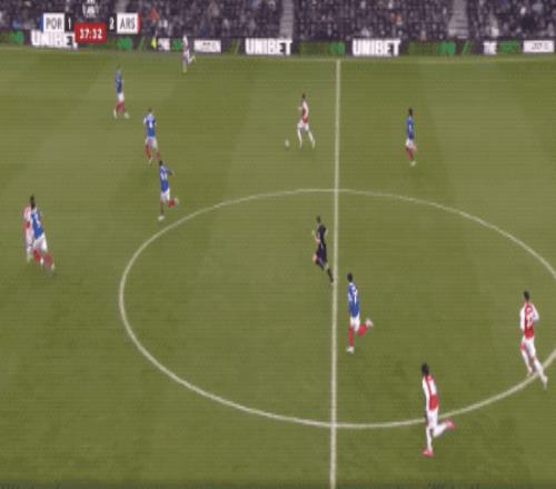 上半场结束,阿森纳2-1暂时领先。下半场开始仅仅5分钟,枪手的第三个进球姗姗来迟。
