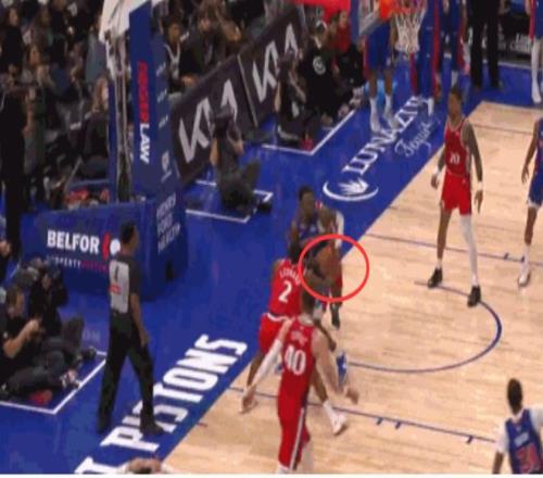 第二次漏判,出现在距离比赛结束还有27.4秒,也就是莱昂纳德抢断完成后不久,活塞队的格林伸手切球,也碰到莱昂纳德的手腕,将他的手从球上拨开,致使莱昂纳德丢球。这同样是一次漏吹的防守犯规,不过,这一球最终出界,球权还在快船手中。