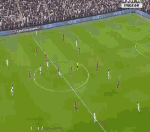 上半时补时阶段,皇马左路进攻,维尼修斯中线前拿球推进硬刚孔德,维尼修斯外道超车推进,孔德高速回追,和队友形成包夹再次拦住维尼修斯,不料却被维尼修斯再次硬突,一个穿裆甩开孔德,维尼修斯内切到小禁区前沿冷静推射远角得手,皇马1:1扳平比分。2分钟,巴萨中路快速反击,佩德里禁区弧顶前送出手术刀式直塞,莱万反越位成功突入禁区获得超近距离单刀,面对出击的门将库尔图瓦,莱万一记挑射得手,巴萨2:1再次取得领先。